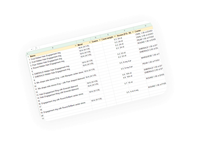 You will receive access to a price list of diamond rings with no brand markup before they are available in stores. You can receive the list via email or WhatsApp